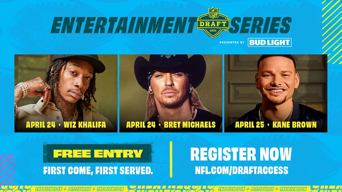Both concerts take place at the Draft Theater on the North Shore, directly outside Acrisure Stadium. Admission is free on a first-come, first-served basis. To access the Draft campus, fans must register for a free pass through the NFL OnePass app or at NFL.com/DraftAccess. There are no physical or paper tickets; entry is handled entirely through a QR code inside the app. For fans without a smartphone, on-site registration will be available at the Fan Services desk.