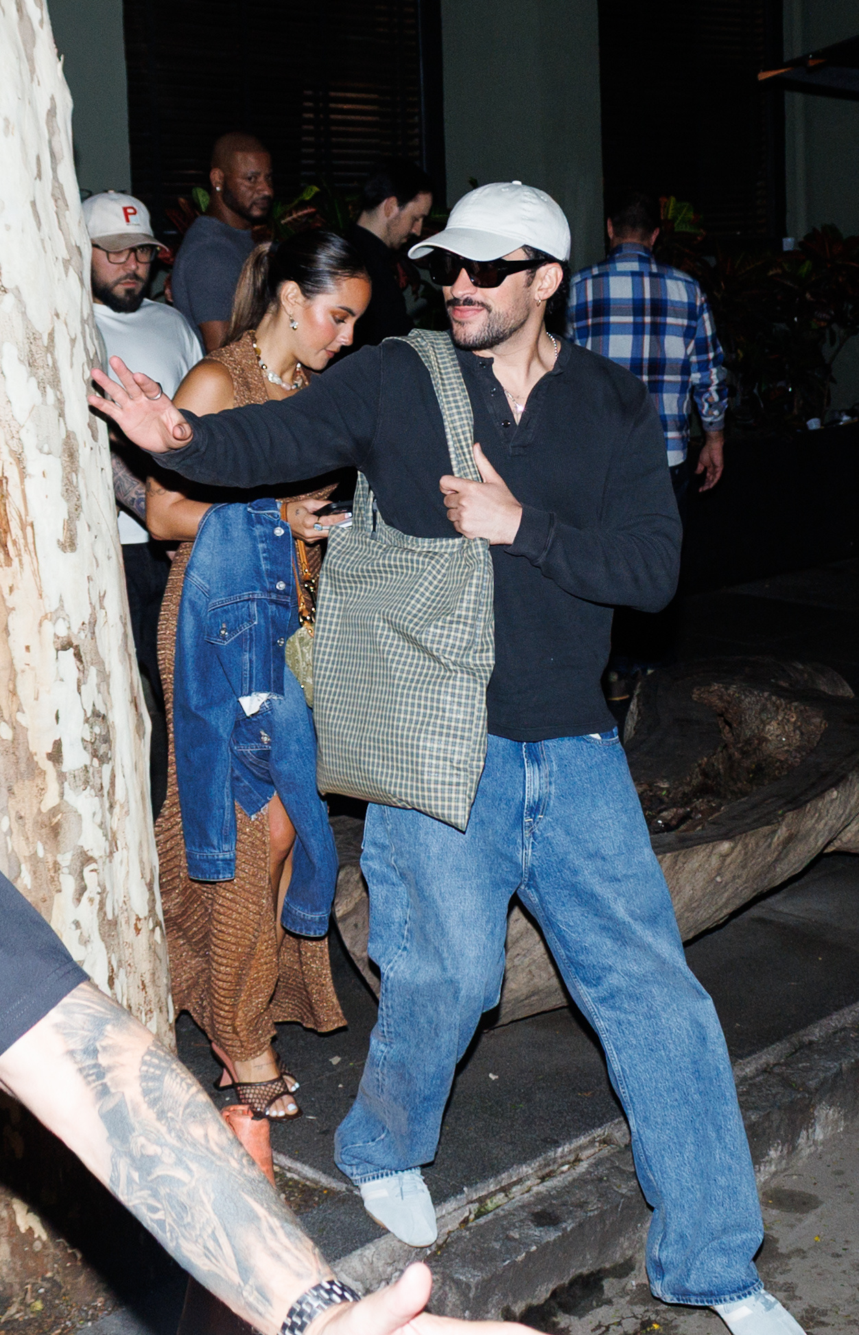 Photos obtained by Page Six showed the “Yo Perreo Sola” rapper going incognito outside the restaurant in a checkered face mask, ball cap, and blue hoodie.
