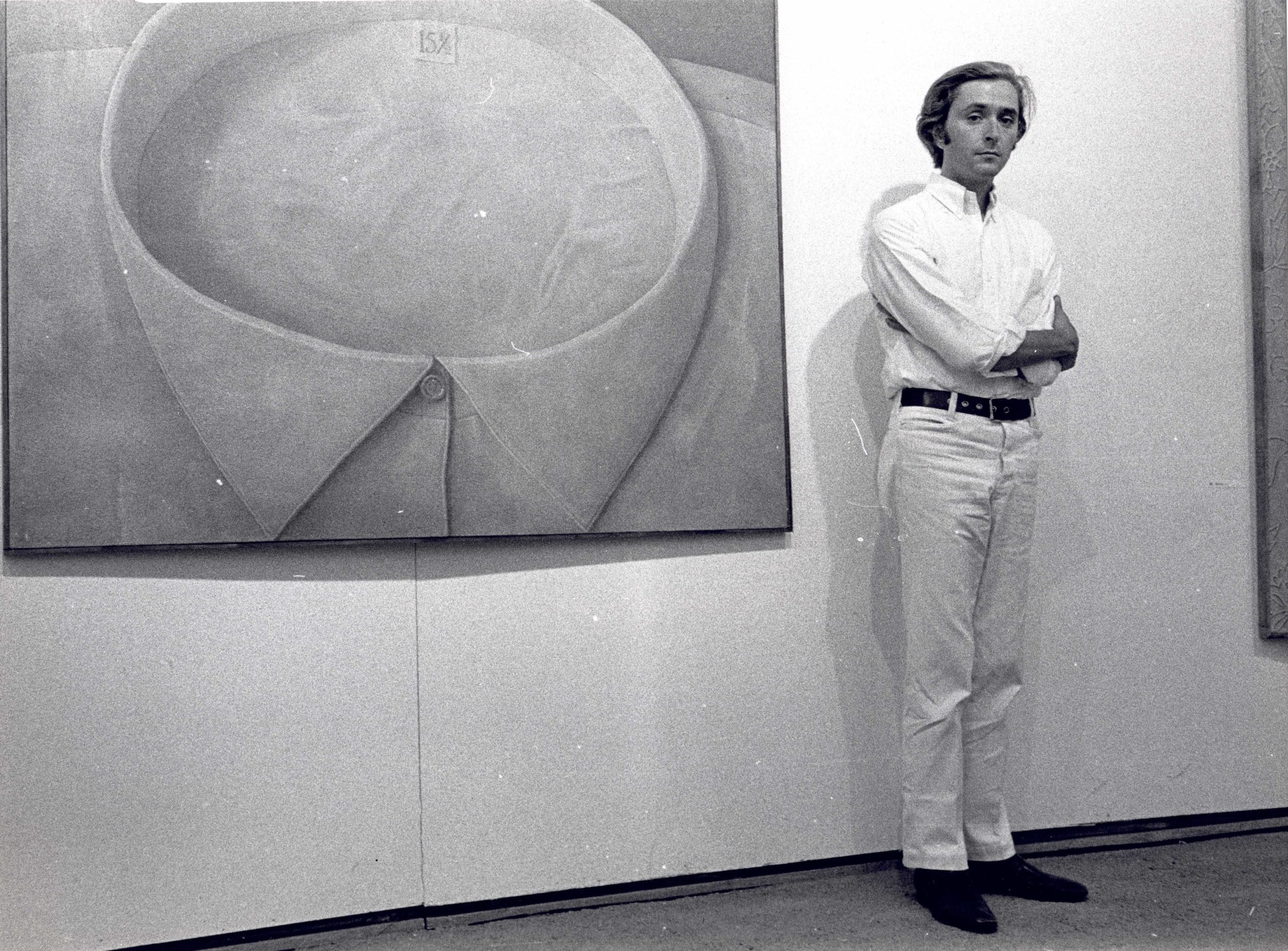 The final space in the show considers Gnoli’s preoccupation with clothing, in part a product of his costume-design background and exposure to his first wife’s fashionable friends. From a crisp white collar to the maroon Purple Bust (1969), his color palette enhances the monastic quality of these paintings, which nearly double as fabric studies. “He was a very elegant person with a magnetic personality, and he liked to dress well,” Vu says. Rather than paint from life, Gnoli painted from his “fabulous visual memory”: “He had incredible eyes and could see things that other people didn’t.”