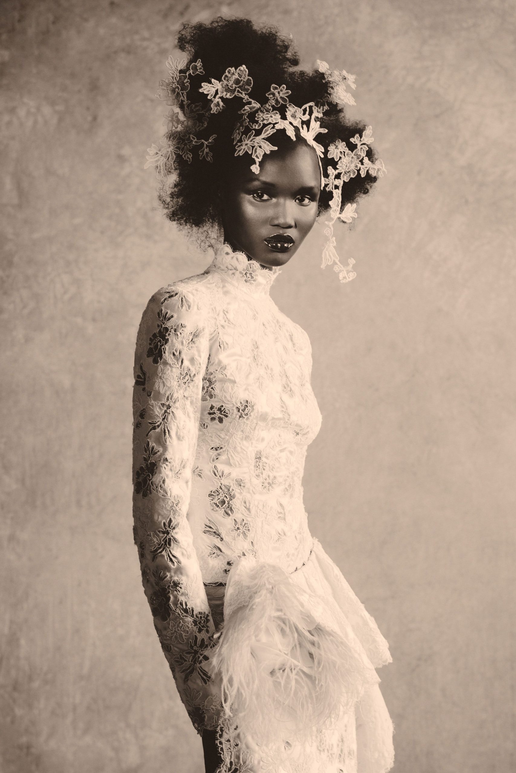 Danielle Frankel’s atelier is a quiet and serene reprieve when you step off the New York City streets. It’s a welcoming atmosphere for brides-to-be admirers looking for a wedding dress that is as interesting as it is well-made. Often recognized for her whimsical but architectural approach to bridal design, Frankel’s work has matured of late—a natural progression for any designer nearly a decade in. This season, she asked herself how she could push develop her ideas further, likening the collection to a “rebirth.” (The brand also wiped its social media, confirming this sentiment.)