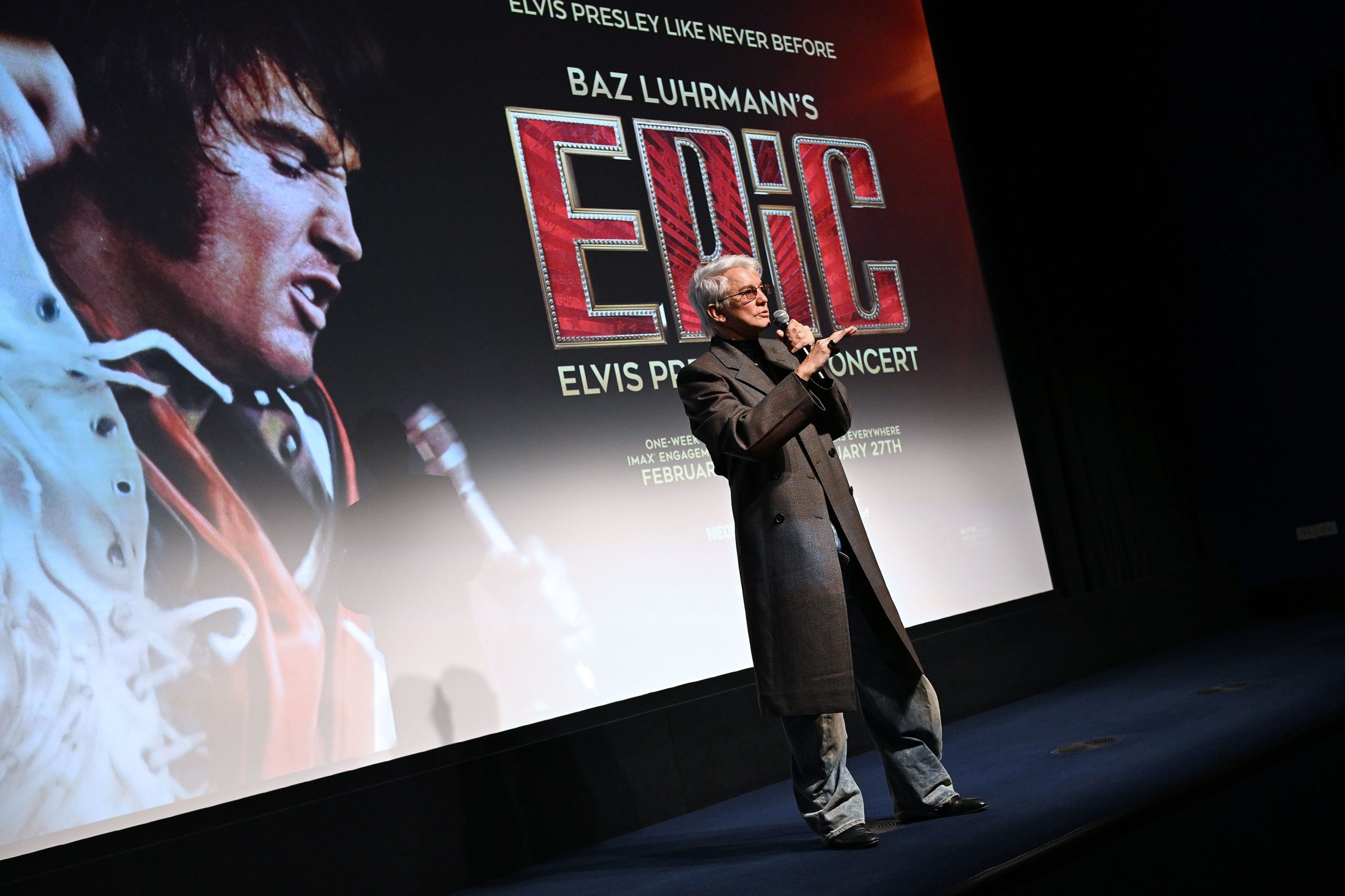 Why, after the success of his dramatized Elvis film, did Luhrmann decide to do another? Part of it was the richness of source material—in a speech to the crowd, he describes going to the MGM archive and discovering 67 boxes of negatives. Another part of it was, well, artistic duty. At one moment in the documentary, Elvis, blue eyes wide, tells the crowd that one of his life wishes is to perform in New York or Britain. He never got to do so in his lifetime. “We’re giving Elvis the world tour he dreamed but never had,” Luhrmann says, gesturing around the crowd at The Crosby. Indeed, EPiC opens worldwide on February 27, bringing The King and his rich baritone to the global masses. Who knows, maybe it’ll start a new wave of Elvis fervor too.