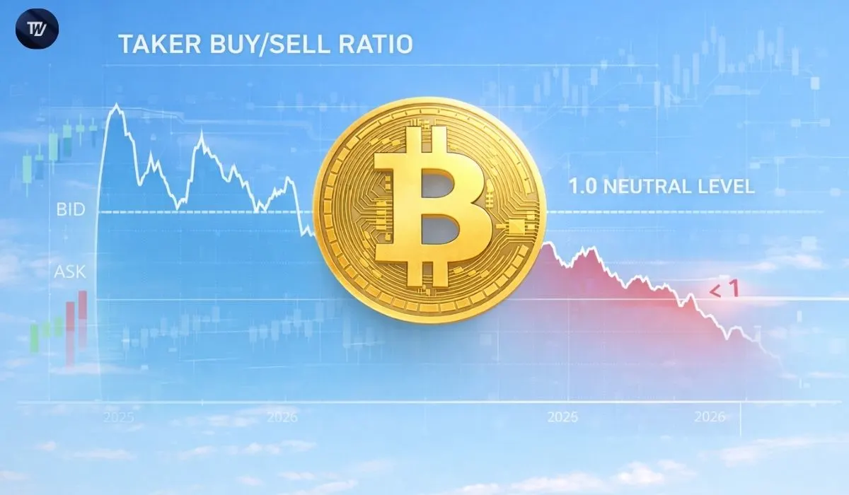 Bitcoin’s (BTC) taker buy/sell ratio has fallen below 1, showing that sell-side market arrangements are presently overriding buy-side aggression across platforms. The criteria, which trace the volume of taker buys relative to taker sells, are broadly used to assess short-term order flow active in the derivatives industry.