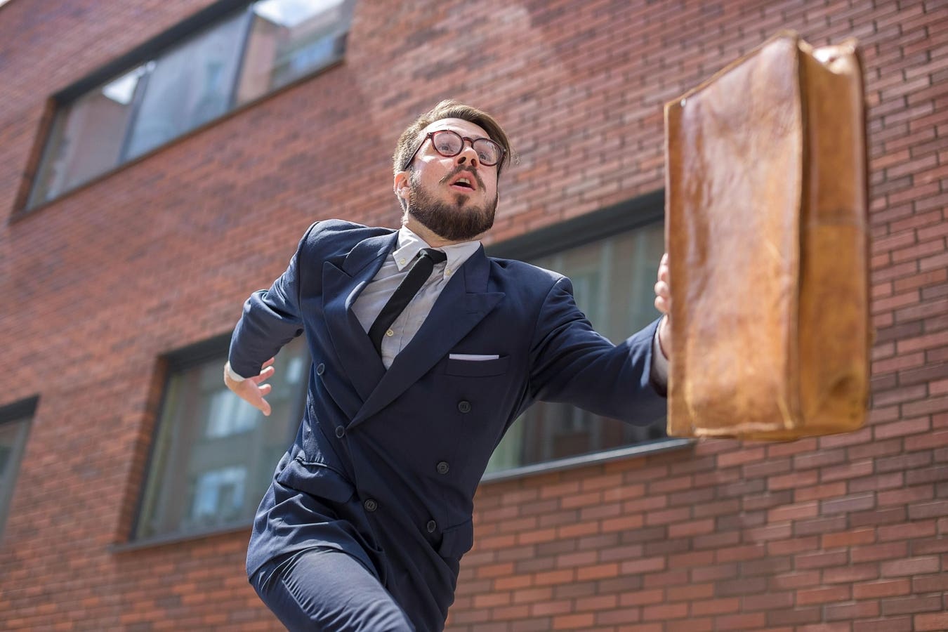young businessman running in a city street
